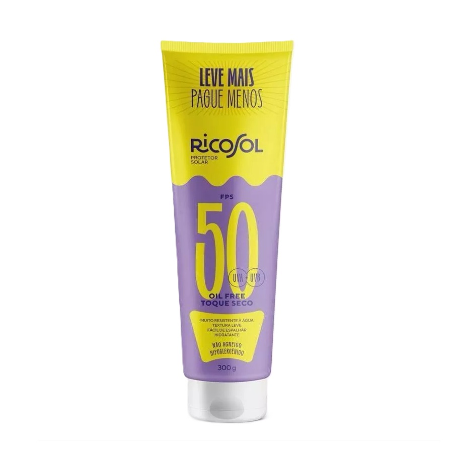 Proteção, economia e cuidado para toda a família! O Protetor Solar FPS 50 Oil Free Toque Seco 300g Ricosol – Tamanho Família oferece alta proteção contra os raios solares, ajudando a prevenir queimaduras solares e os sinais de envelhecimento precoce da pele causados pela exposição ao sol.